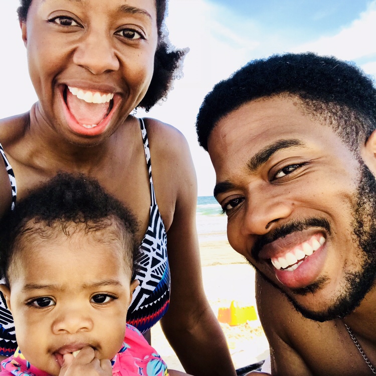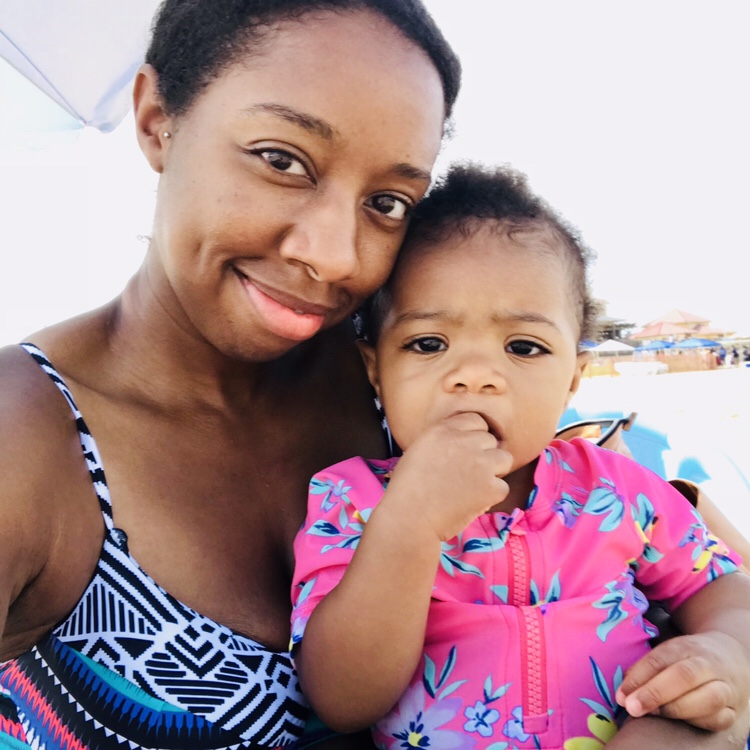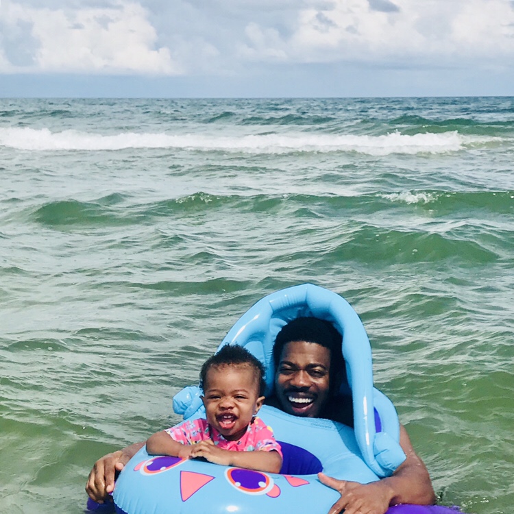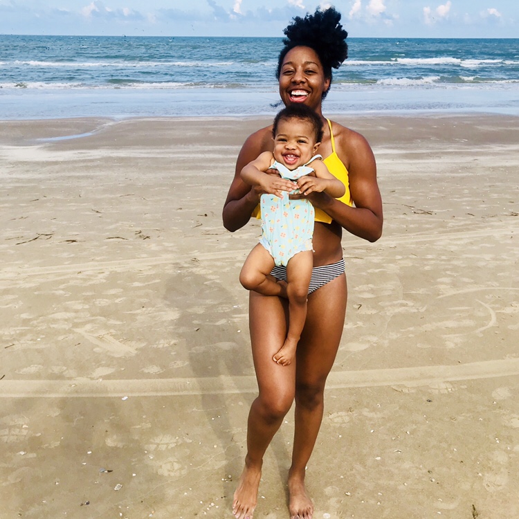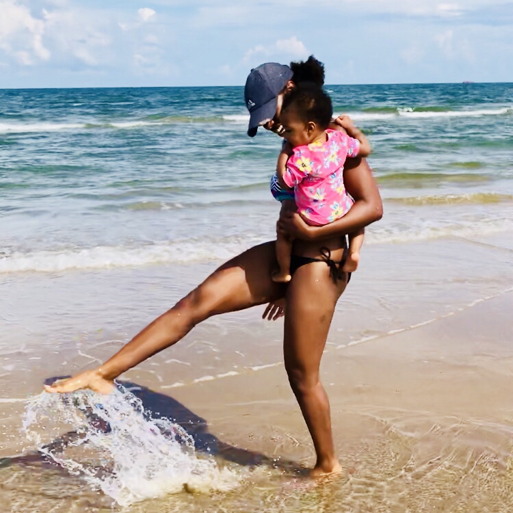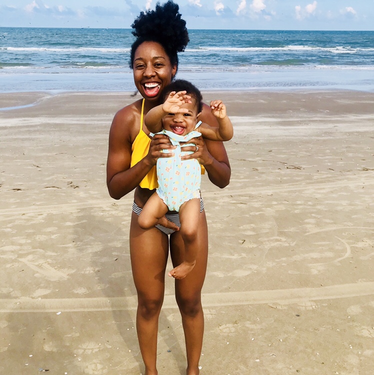 I couldn’t wait to experience us as a family going to the beach together for the first time. Stuffy nose and all, as soon as we got unpacked, we headed straight for the water. A big smile immediately spread across Buzzy Bee’s little face as we got closer and closer to what I would refer to as a giant tub.