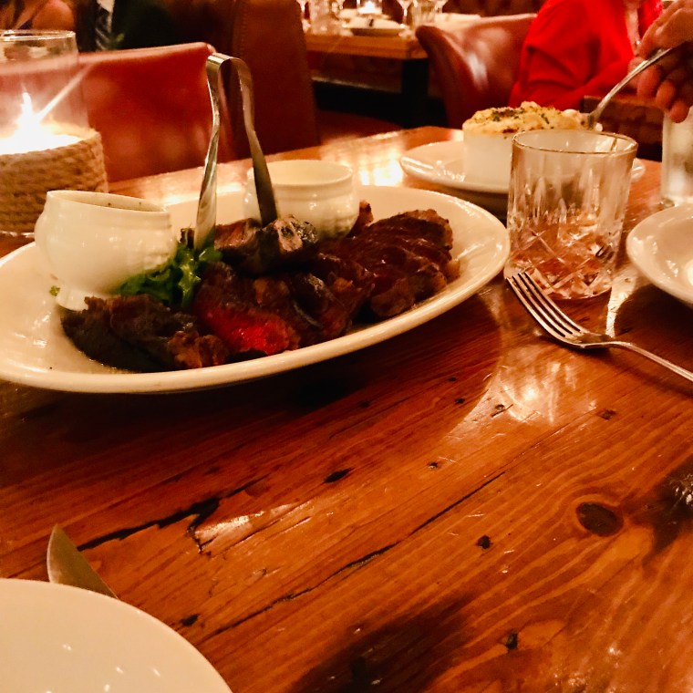 For the entree we ordered what’s called “The Lenox” a bone in prime rib made for sharing. They don’t ask you how you would like to have it cooked either, they are going to cook it the way it’s meant to be cooked; to perfection. We also had the casserole mac and cheese which I highly recommend. It’s gooey, rich, and homey.