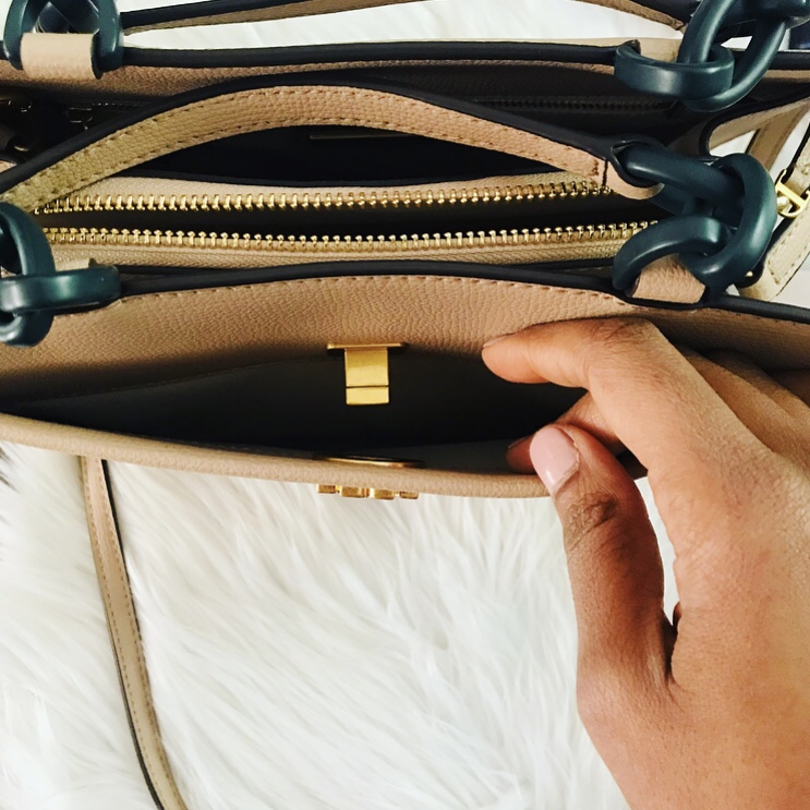 When it came to the color of this bag, it was truly crucial. I didn’t want black or navy since it wouldn’t be as easy for me to brighten it up in Spring and Summer. I didn’t want tan because I’ve had it before and I’m all tanned out as of right now. This bag in “Perfect Sand” is absolutely stunning; it’s a cross between nude, blush, beige and it goes with EV-ER-Y-THANG!! When I say everything I mean it’s classy to casual and works with any color I plan to wear in my wardrobe.