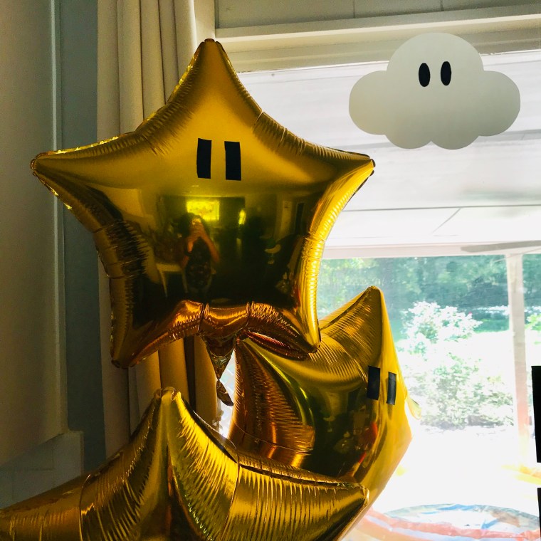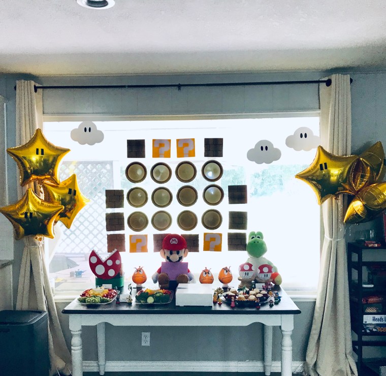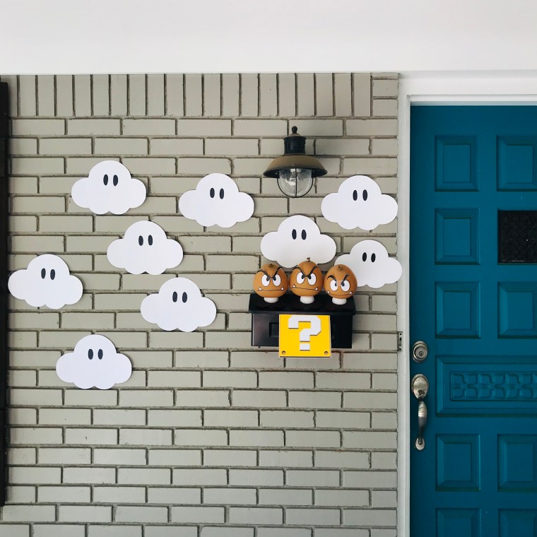 When she walked up to the door, she was instantly met with classic Super Mario clouds, a question block card, and of course Goombas (I didn’t want to make it too easy lol).