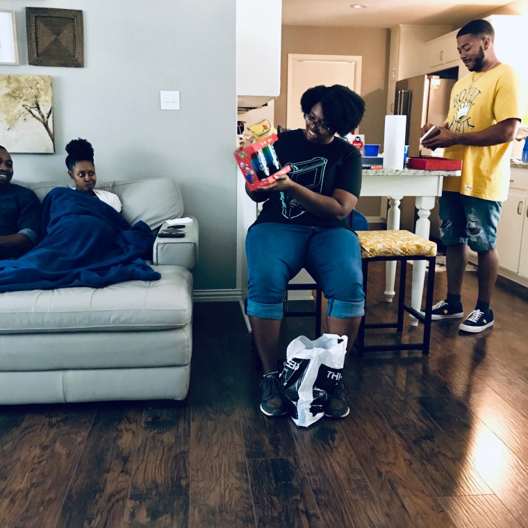 Jessica got right in and got hugs and a welcome to your 30s from everyone.