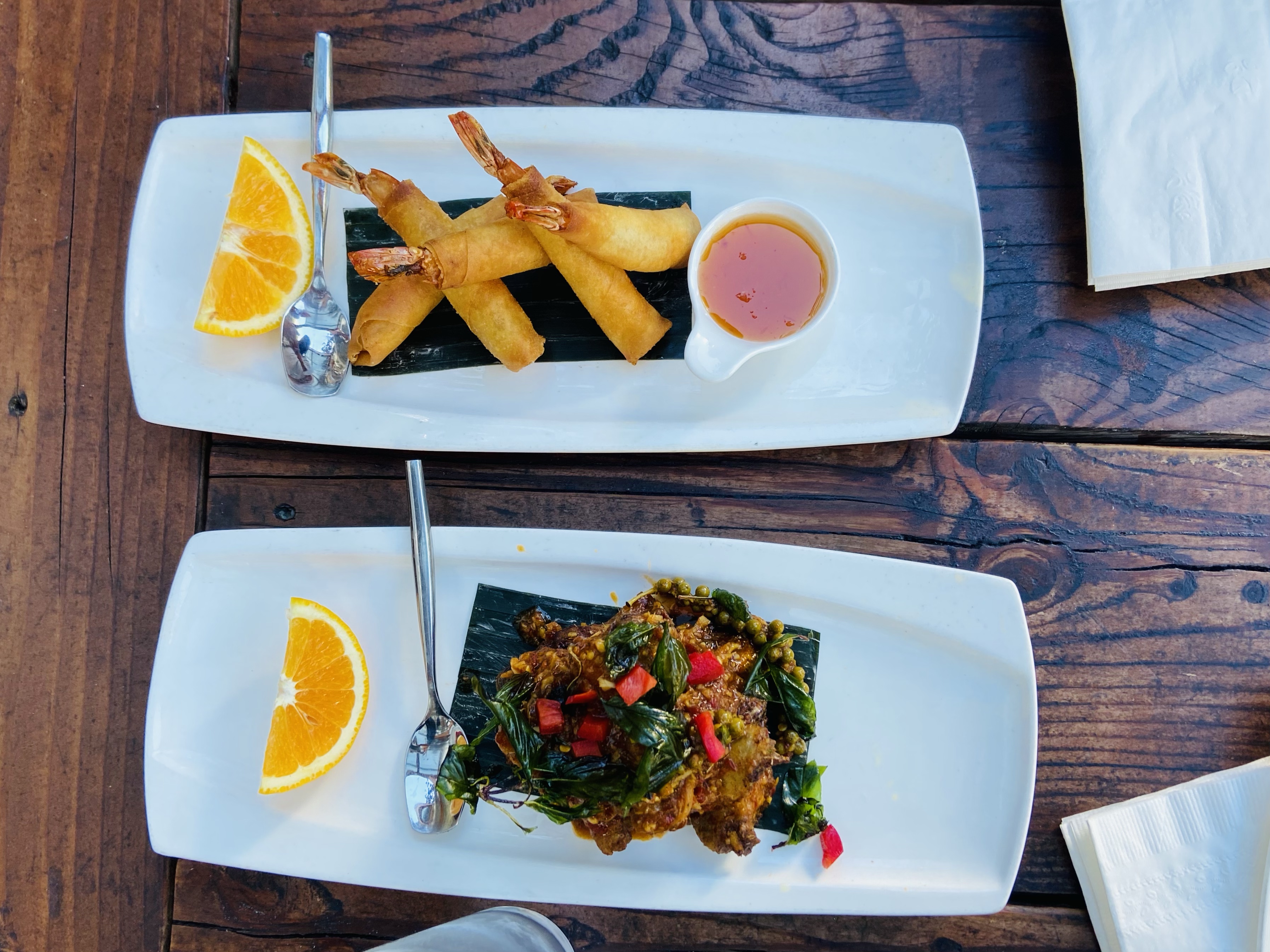 We found a nice little Thai spot called Ben Thai Cafe. We only grabbed a snack since we were saving our stomachs for that nights anniversary dinner, but the curry wings were a very nice bite! They come smothered in sauce and topped with a crispy bit of fried basil 😋