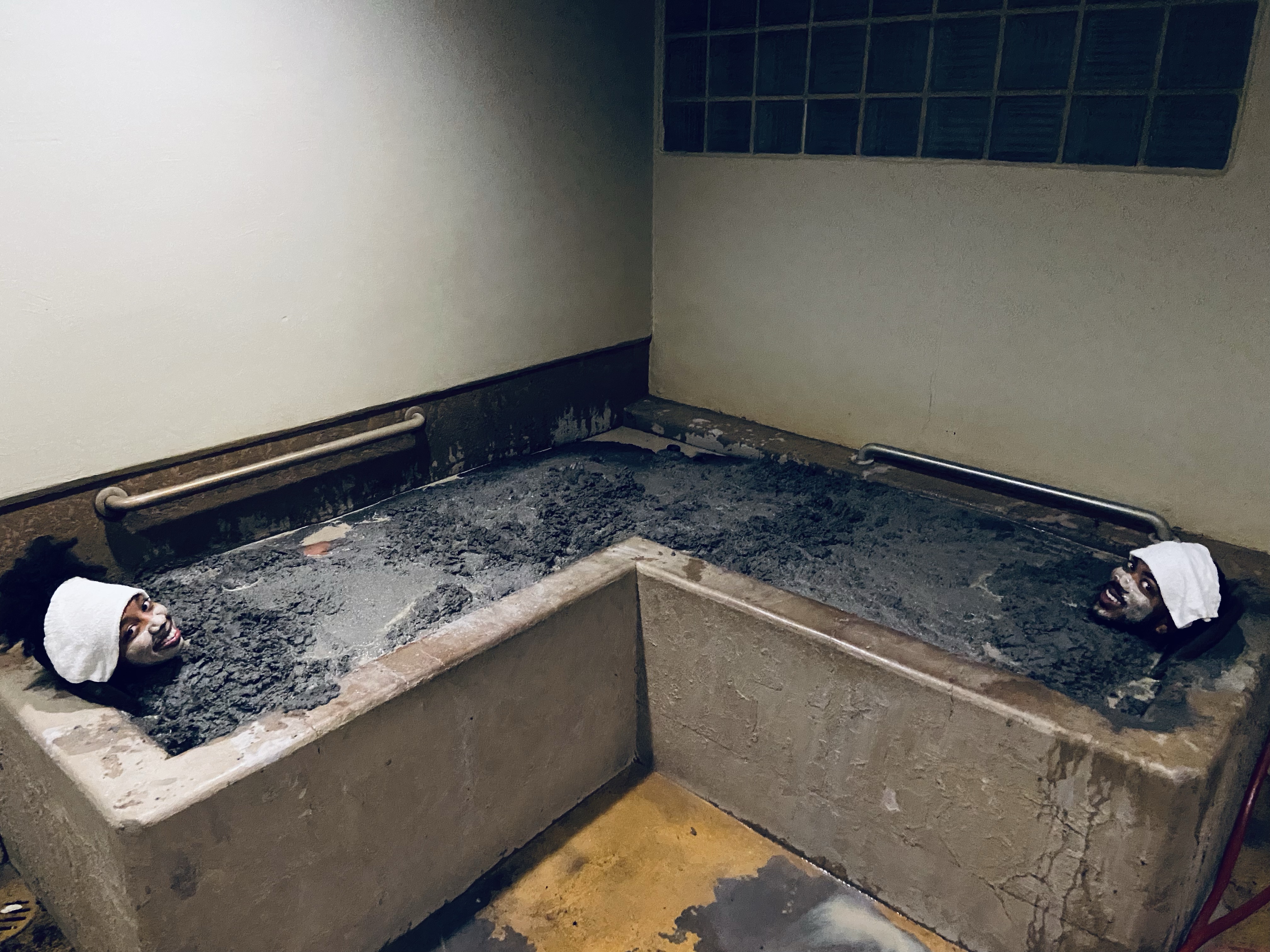 The mud is thick and roughly 100 degrees when you step in. We stayed in for 15 mins before showering off with mineral water and then a 15 minute mineral bath jacuzzi. The final cherry on top is relaxing in a dim lit room to further detox.
