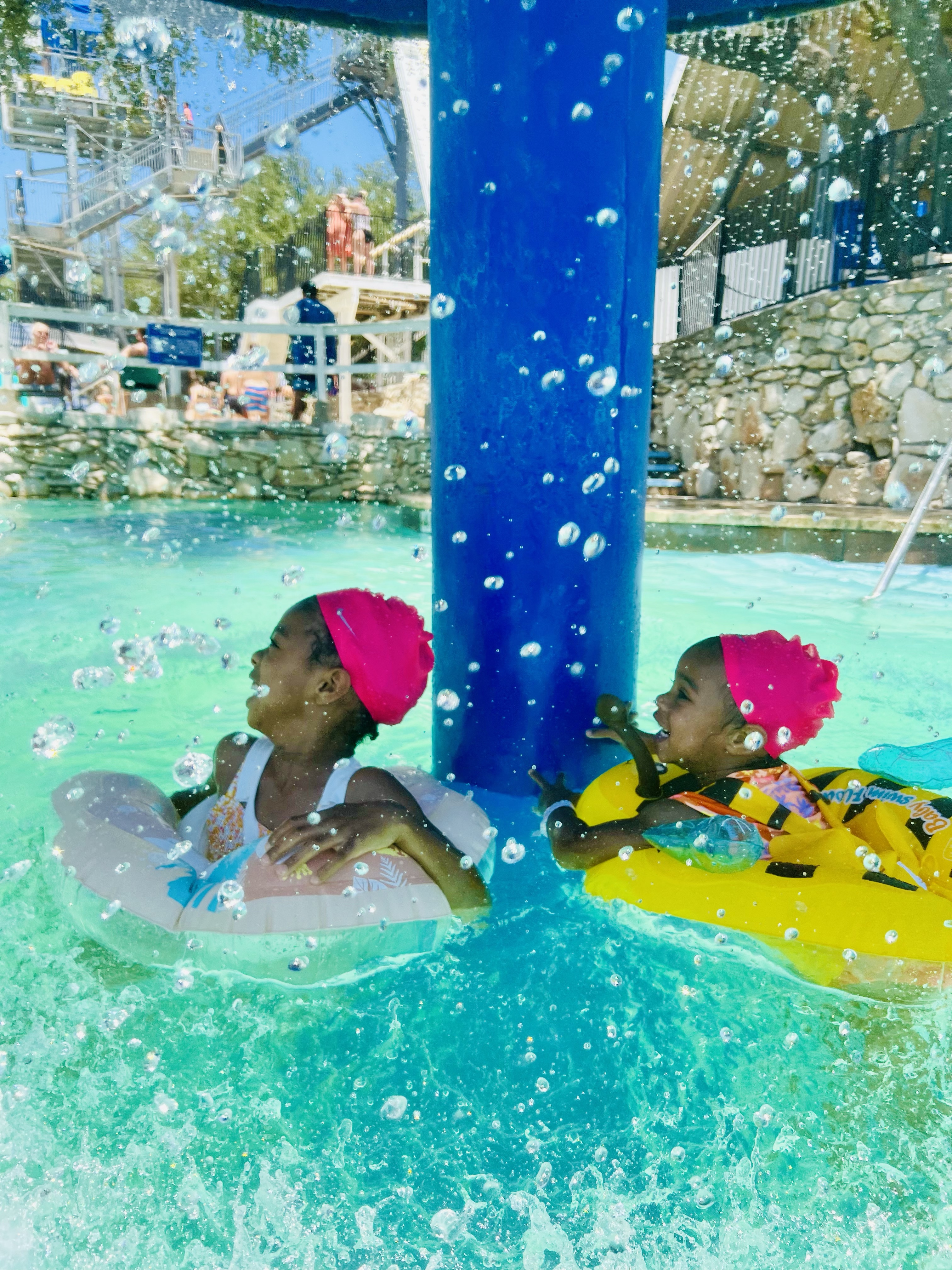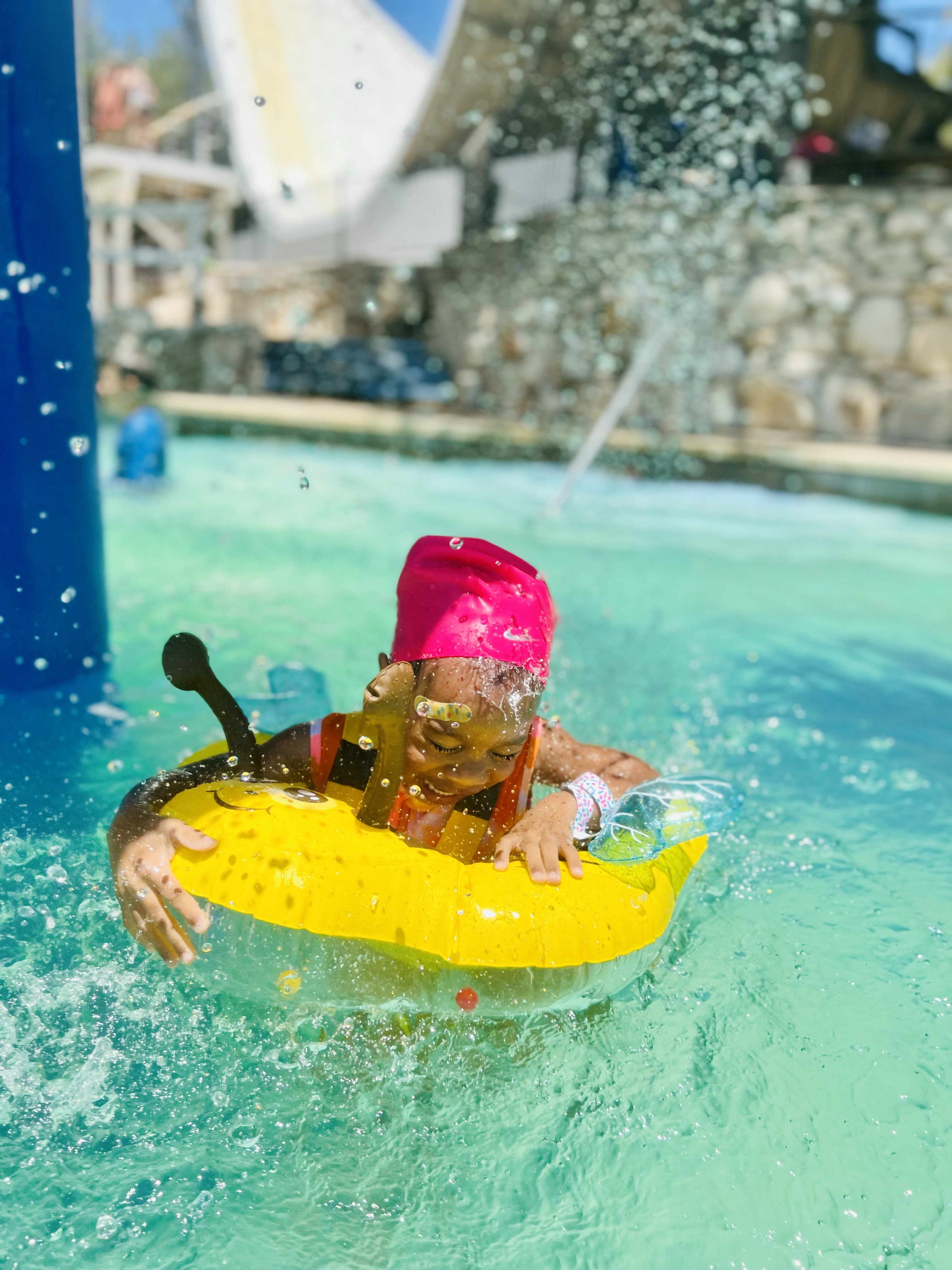 We had so much fun splashing in the water. My little Buzzy Bee even braved the tube slides with my husband. Since we had these awesome floaties, it allowed them to play much safer on the slides and the open water. Still had to supervise, BUT it was nice to be able to let go more and allow them to freely swim around.