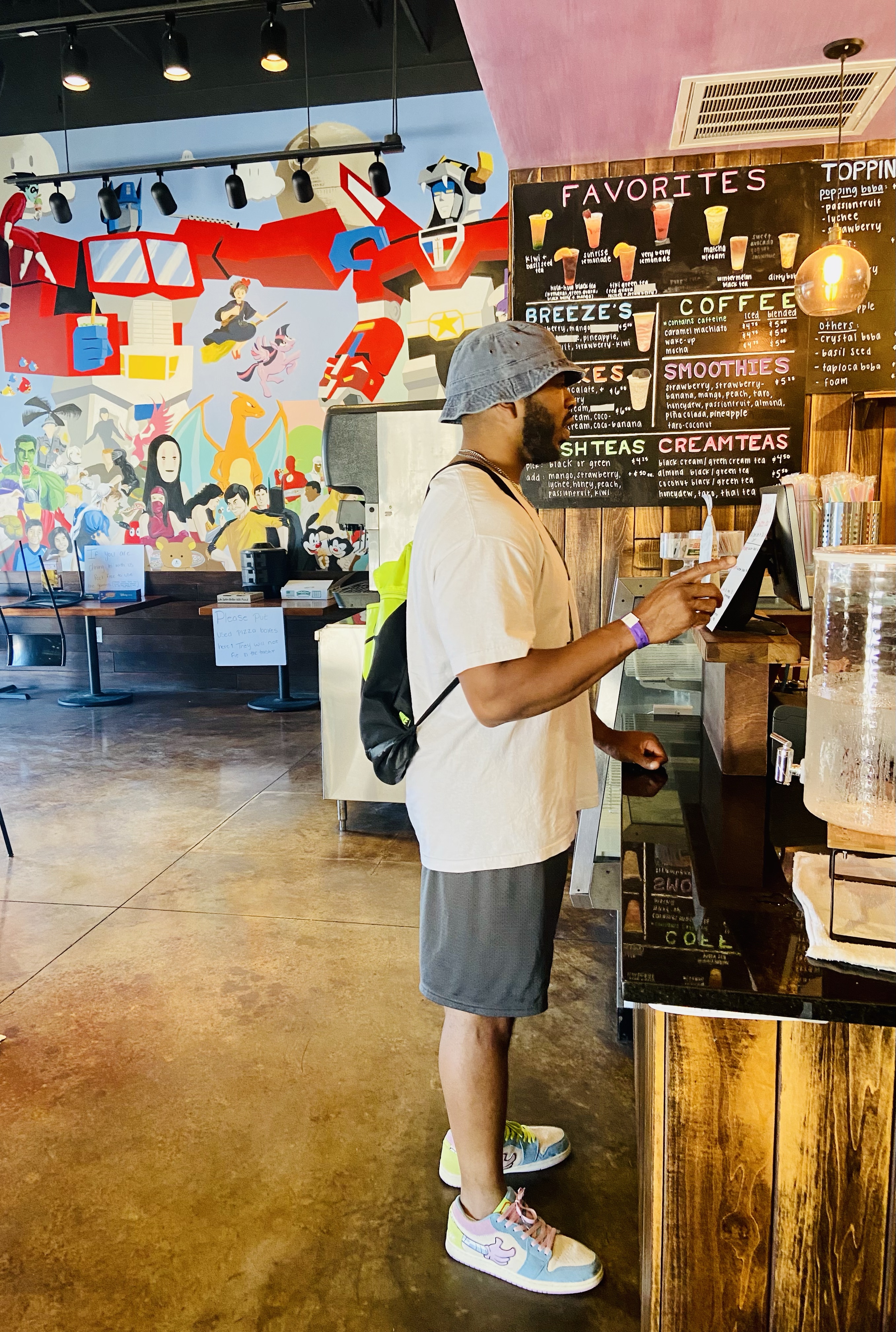 After all that pool fun, we had worked up quite an appetite. We found a spot called Local Slice that we hit up for a bite. When we first walked in, there was a stunning mural to the left with all the characters imaginable…everyone from Goku to Pikachu. We had fun naming off all the characters we could find while we waited to eat.