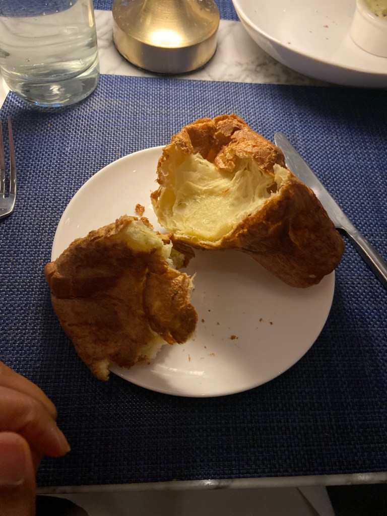 The bread, oddly enough, resembles the shape of a turkey leg. From the exterior it looks pretty hefty and dense, but once you cut it open, it’s surprisingly more like croissant! It’s buttery and flakey and paired with some amazing salted rosemary butter 😋