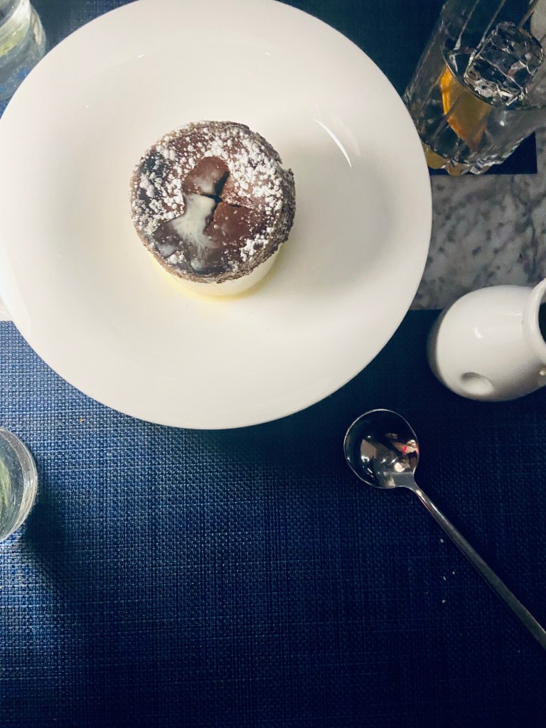 Now of course we HAD to finish the afternoon with some kind of desert. We shared a gooey chocolate soufflé with sweet milk poured in the center. It was light and just the right amount of chocolate without being too fudge forward.