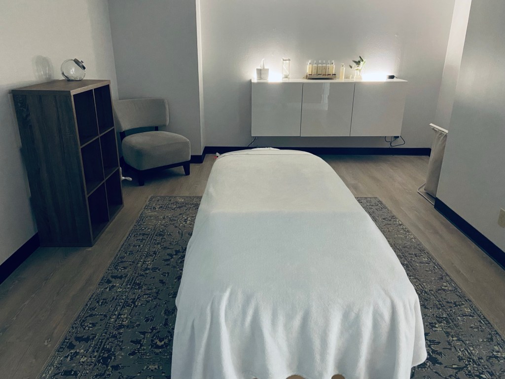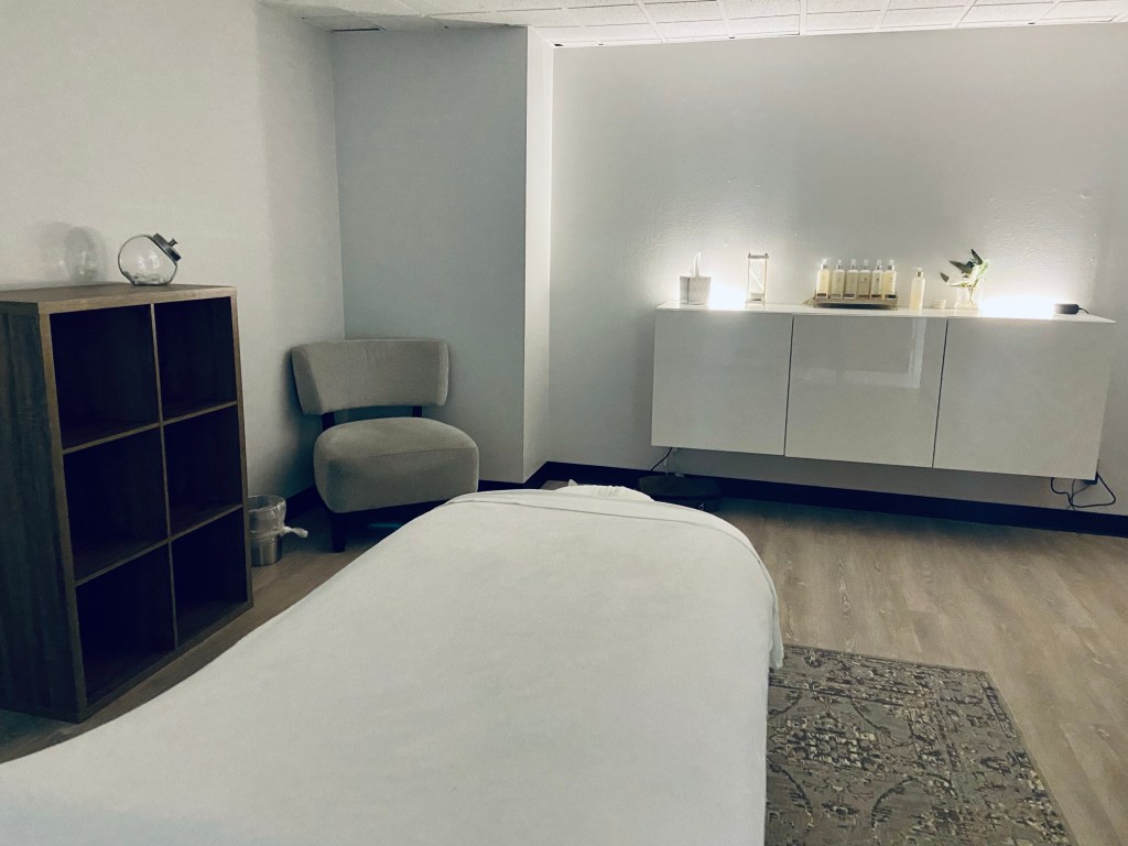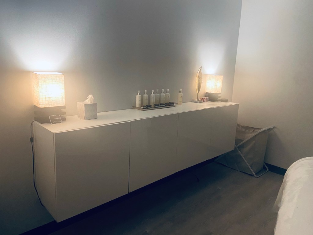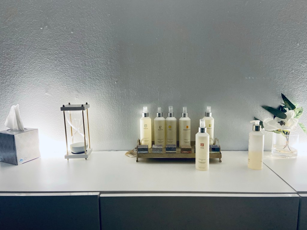 The room is quite sizable for single use. I walked into soothing music, dim lighting, and pleasant scents to prepare the mind and atmosphere for ultimate relaxation. The furniture and decor are also simple and minimalist which is a nice touch to just clearing the mind space from clutter. To further enhance my appointment, I got to choose from five available oils for my own custom experience.