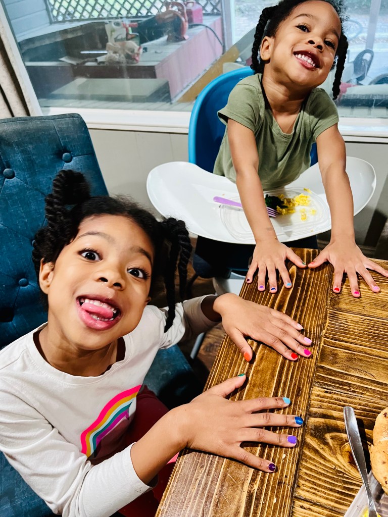Hubs treated the girls to rainbow mani’s 😍 He’s getting pretty good at this. Maybe I should have him do mine 🤔