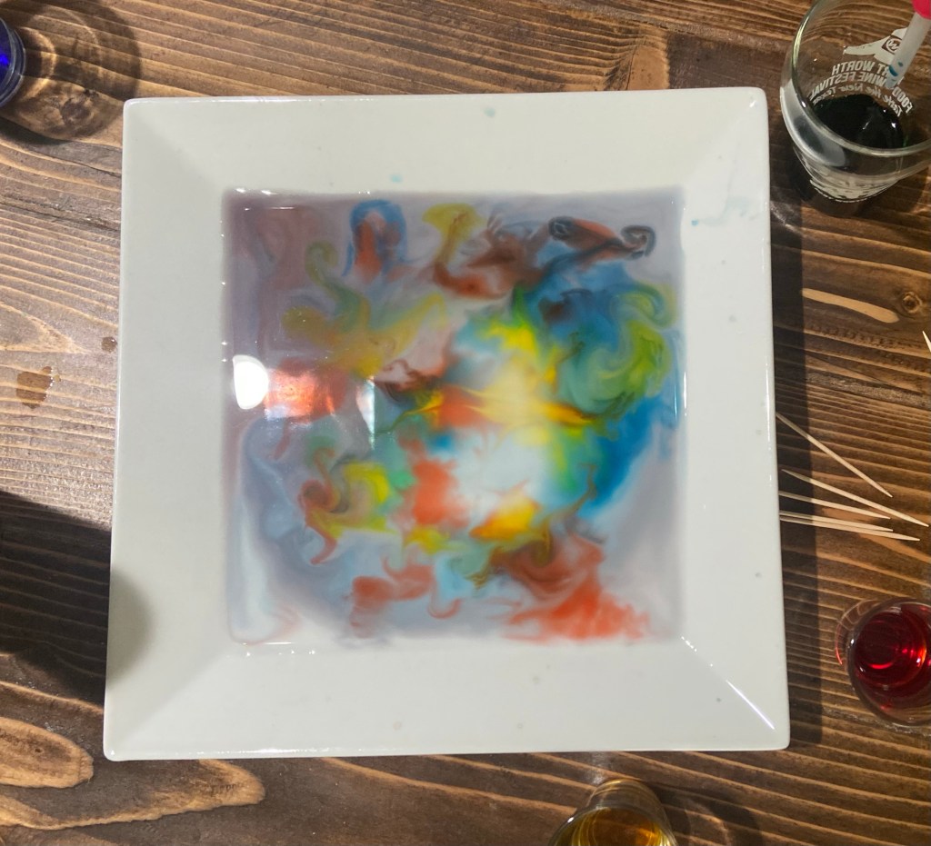 Some at home science fun with food coloring. First we tried a shaving cream raincloud, then we did water color art plates. A very simple inexpensive way to make a huge mess, but also tons of fun and learning.