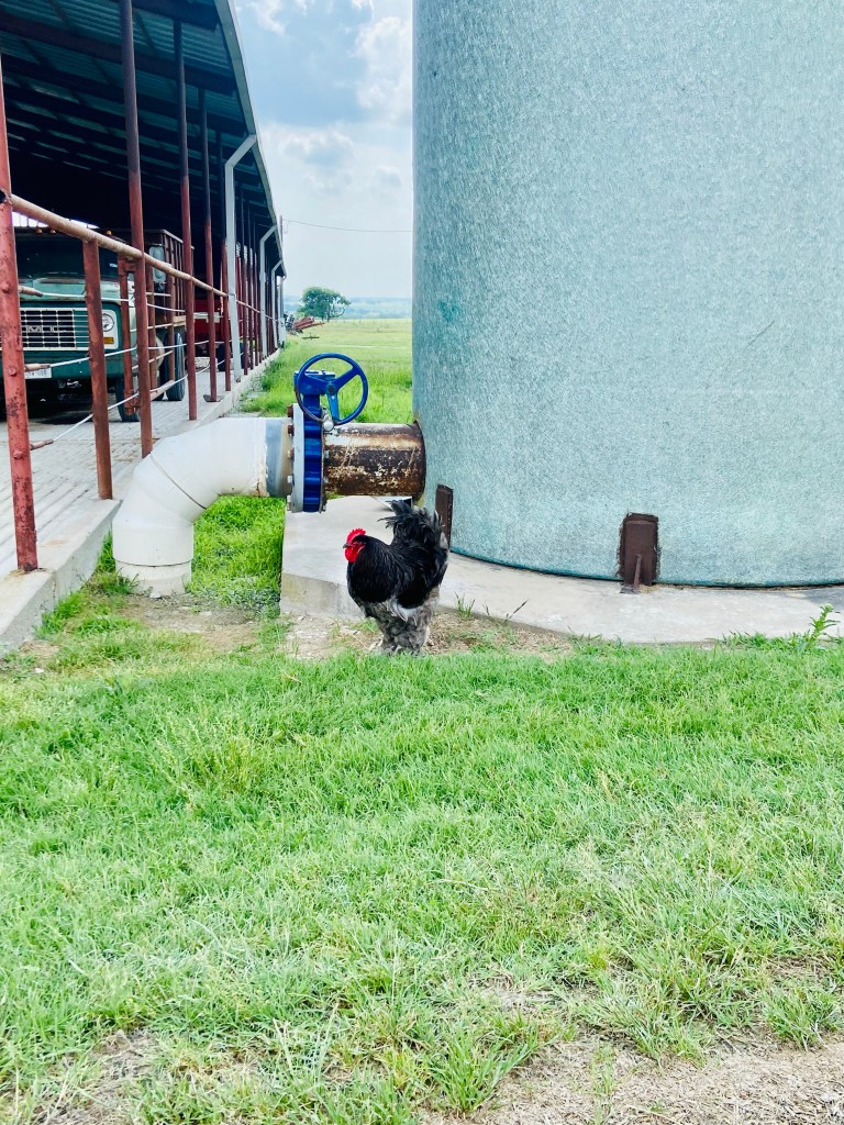 Michelle showed us how the barn has an installed water pump that flushes and cleans the floor of cow dung (I couldn’t imagine trying to clean that by hand multiple times a day). We also got a glimpse of Circle N’s very own nameless resident rooster. Apparently one day he just showed up and declared Circle N his home. Now he spends his days waking up the farm and hanging out near the barn.