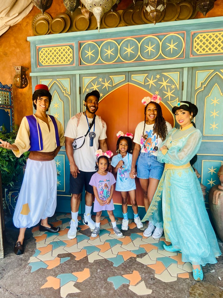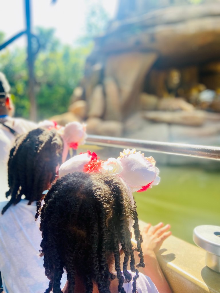 Jungle Cruise was cute but definitely not the girlโs favorite ride. We waited maybe 20 mins in line and kept it moving to visit Jasmine and Aladdin which brings me to another tip I found most useful in strategizing:
