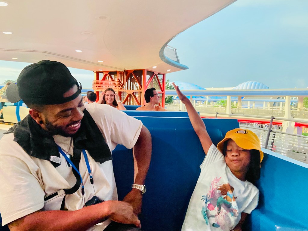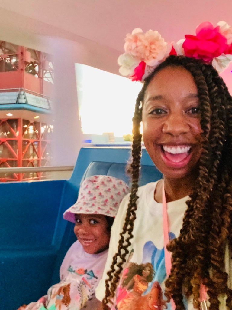 Finally, me and Buzzy Bee took a mommy and me ride at the Space Mountain rollercoaster. I was worried that she wouldnโt like it, but Bee surprised me and enjoyed it so much that she even wanted to do it again ๐