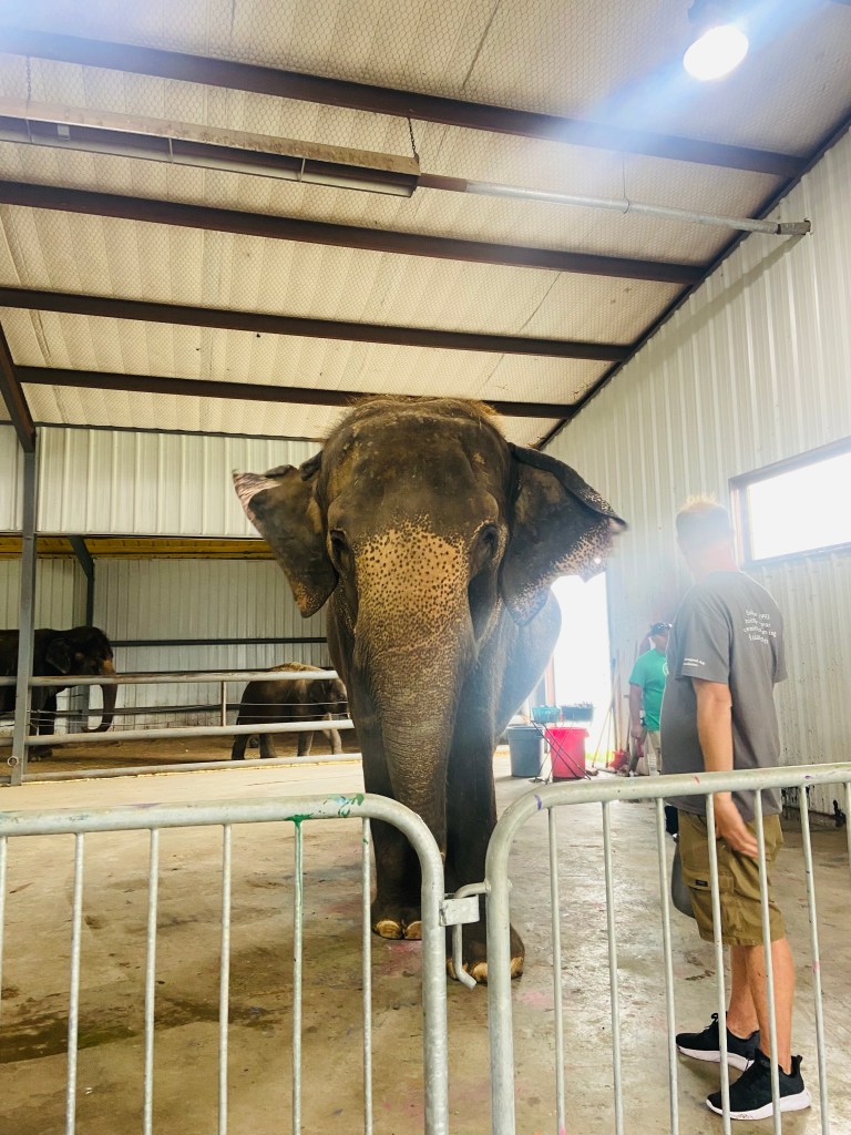 The highlight of our tour was when we got introduced to one of the larger elephants, Delrita! She proudly sauntered in with her trainer displaying her massive size. To see her grandness in person was flooring! It’s like she didn’t realize how intimidating she was. Suddenly I felt very aware that this giant could squash us like bugs.