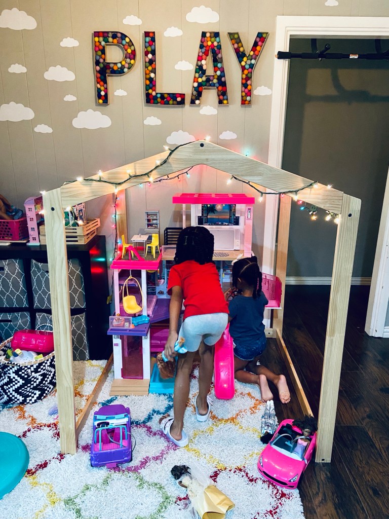 Once Bee arrived home, she was met with none other than a Barbie dream house that her Ganny and Poppie got built for her. The house is pretty elaborate and requires a full on tour. There’s lights, there’s sounds…it’s a whole lotta house. Her and the little had much fun dreaming up all kinds of adventures for their dolls after Bee got some solo time to experience her bday gift.
