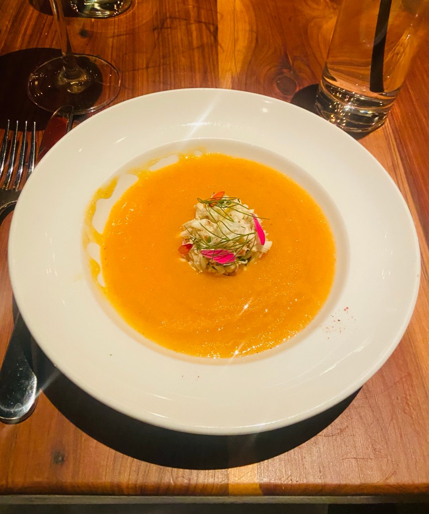 The next dish we tried I ordered on a whim, but it was a Peach Gazpacho with Crab. I couldn’t imagine how this would even taste in my head 🤔. I’m a huge fan of soup, but peaches and crab just do not mix in my opinion. At the recommendation of our server we gave it a try and I’m soooo glad we did!