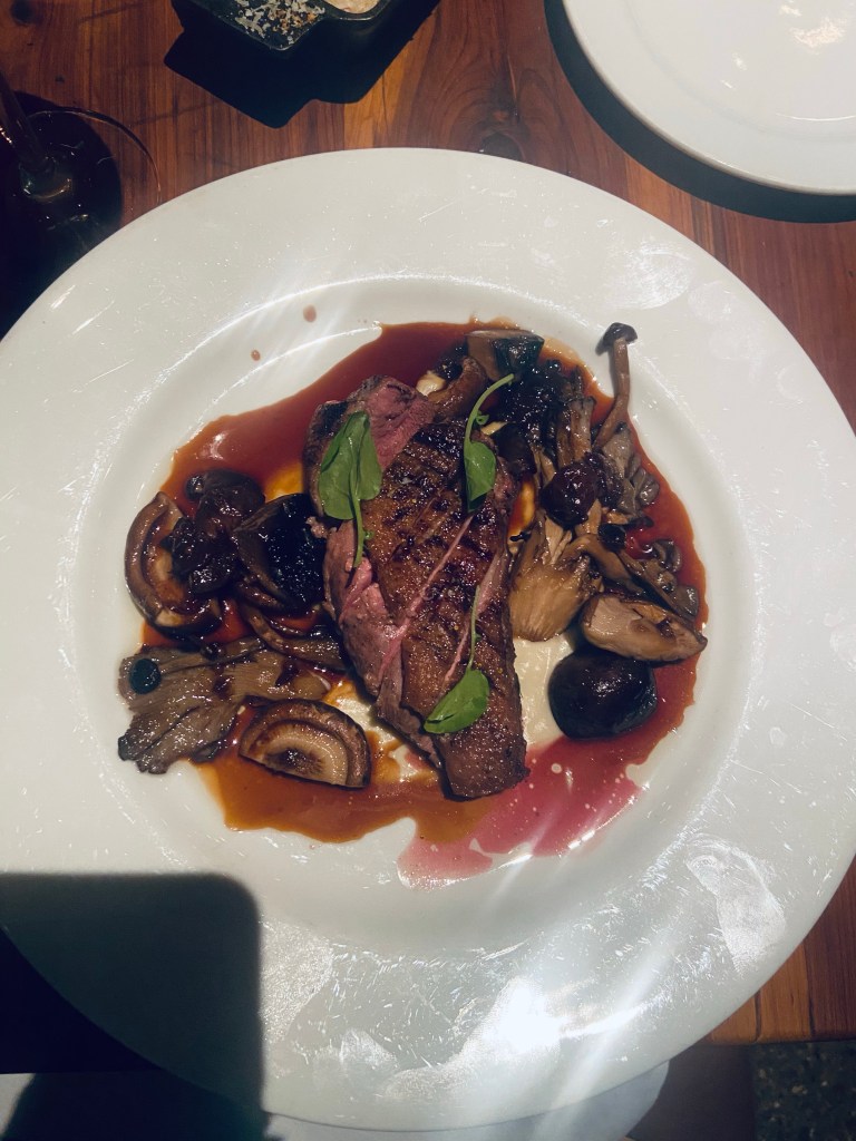 I had the Grilled Duck Breast with Roasted Mushrooms and Fennel Soubise. I’m not going to pretend to know what Soubise is, but with a little help from google, it’s a white cream sauce made with onion purée.