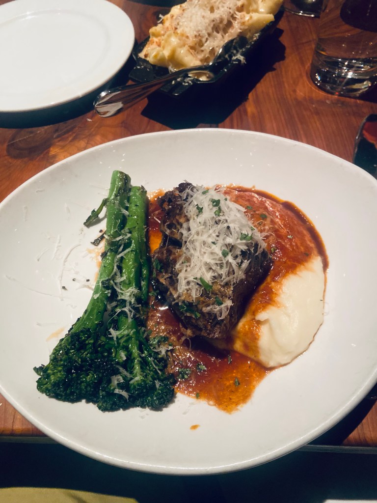 For our entree’s hubs went with a Braised Short Rib with Whipped Potatoes, Grilled Broccolini, and of course a side order of Mac & Cheese.