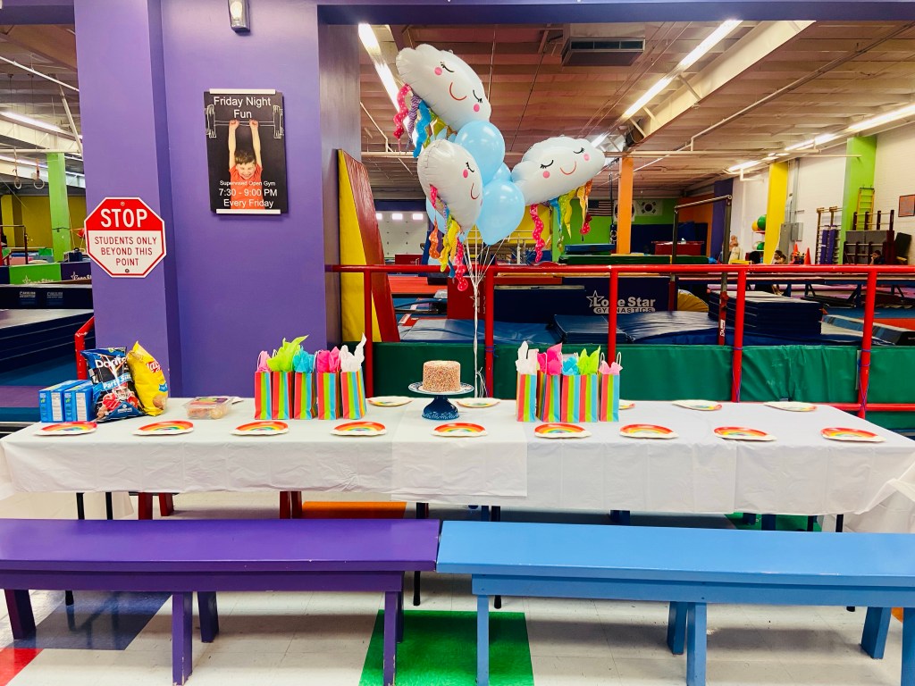 In order to celebrate all things her, we decided to throw a bright colorful rainbow party at Lone Star Gymnastics for her birthday ๐