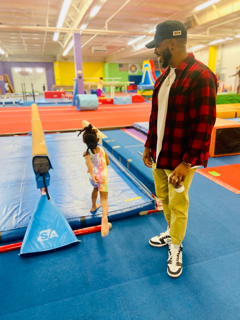As soon as we arrived she hurled off towards the sizable open area with all the bigger equipment! Her gymnastics class meets in the smaller pint sized room split off from the main action. She had been wanting to get over to the other side for quite some time and finally got her chance lol. She flipped, rolled, and swung to her little hearts content.