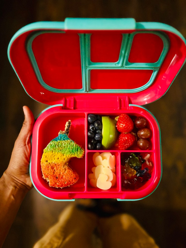 I ended up making her a Rainbow Unicorn PBJ complete with rainbow fruit, heart cheese, and unicorn gummies.