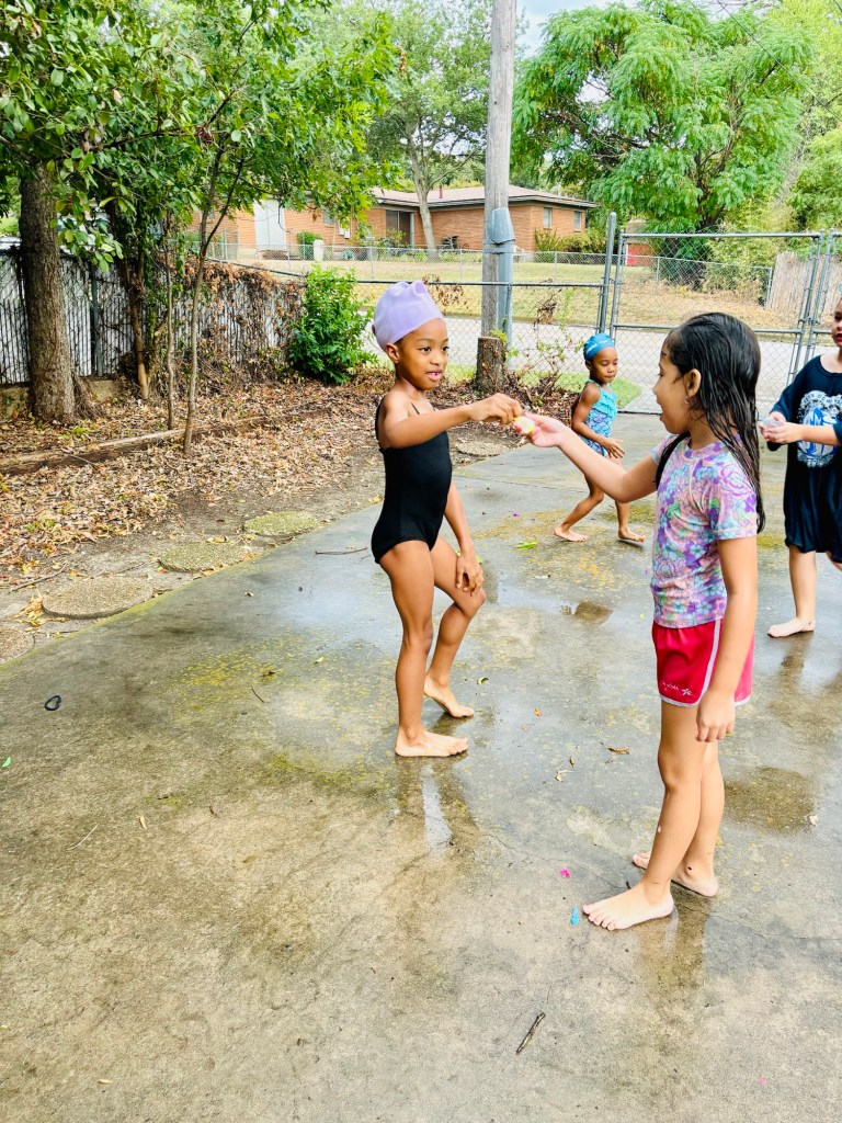 Next, we geared up for the main event; a water balloon fight with some friends from school to the backdrop of a 6ft Unicorn Sprinkler.