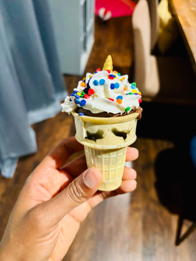 Needless to say the kiddos really had a blast! The water balloons were a hit and after all that running around they were ready for their final treats. I chose to make Unicorn Ice Cream Cone Cupcakes. These are so fun because instead of ice cream, you put cake batter in the cones and bake it in the oven. I topped ours with whipped cream and edible unicorn sugar decor.